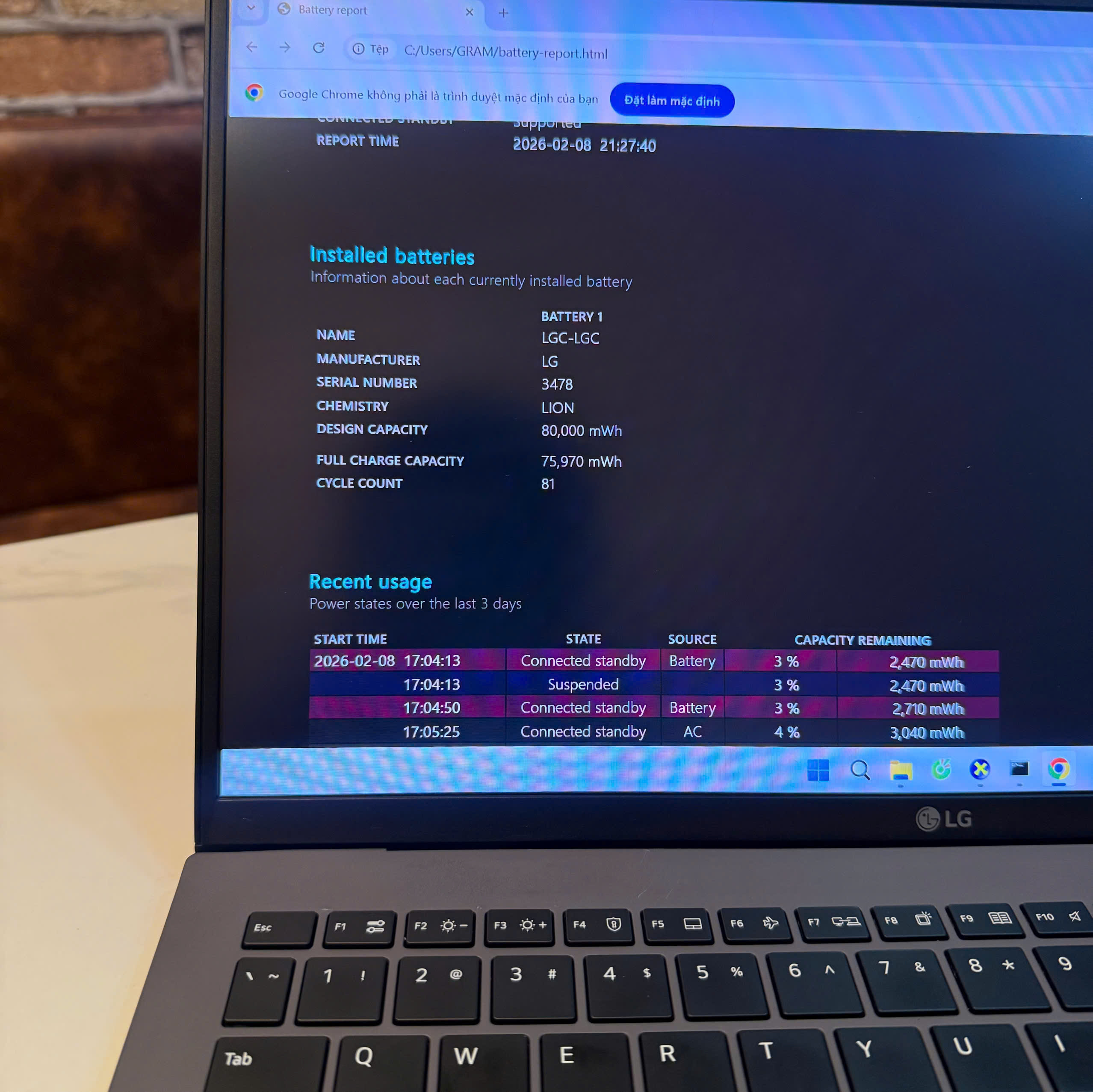 - Dòng Gram luôn nổi tiếng với thời lượng pin vượt trội. Viên pin 80Wh trên LG Gram 15Z90R cho phép bạn làm việc liên tục cả ngày dài chỉ với một lần sạc đầy.
